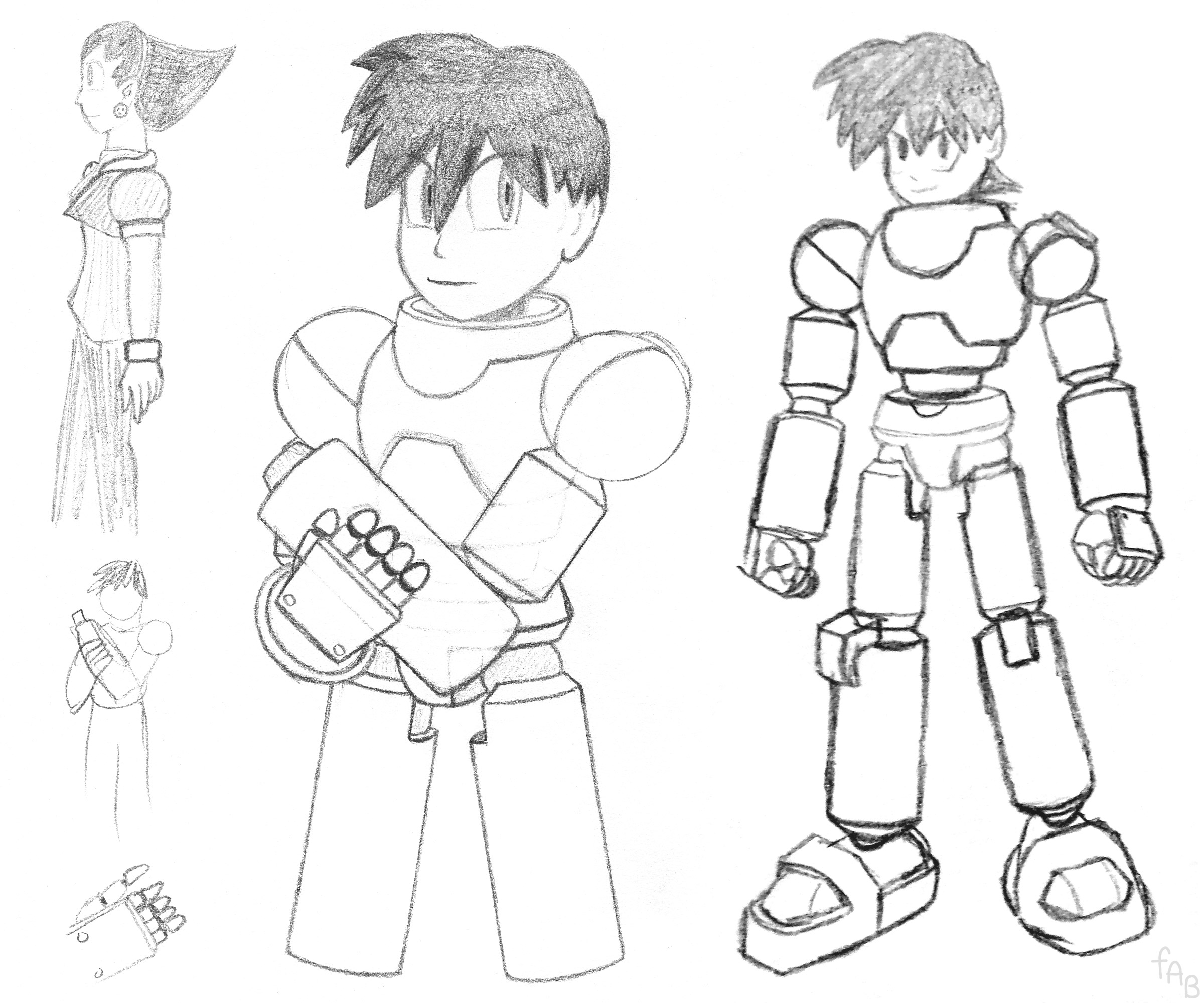 Other than some silly, tiny scribbles in the margins of my nightly journal, I do believe these drawings are my very earliest Mega Man Legends artwork. These may have been done in September of '98, but I'm guessing October, as I was probably still too busy playing the new game in September.